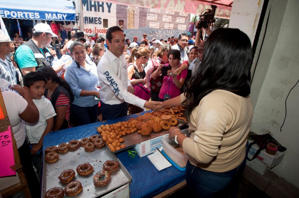 El candidato del PAN a la gubernatura del Estado de Querétaro, Francisco Domínguez Servién, recorrió el tianguis de El Tepetate, donde escuchó las inquietudes de los comerciantes en temas de seguridad, economía y transporte público. Entre las propuestas señaló la creación de cajones de estacionamiento para el tianguis y mercado.