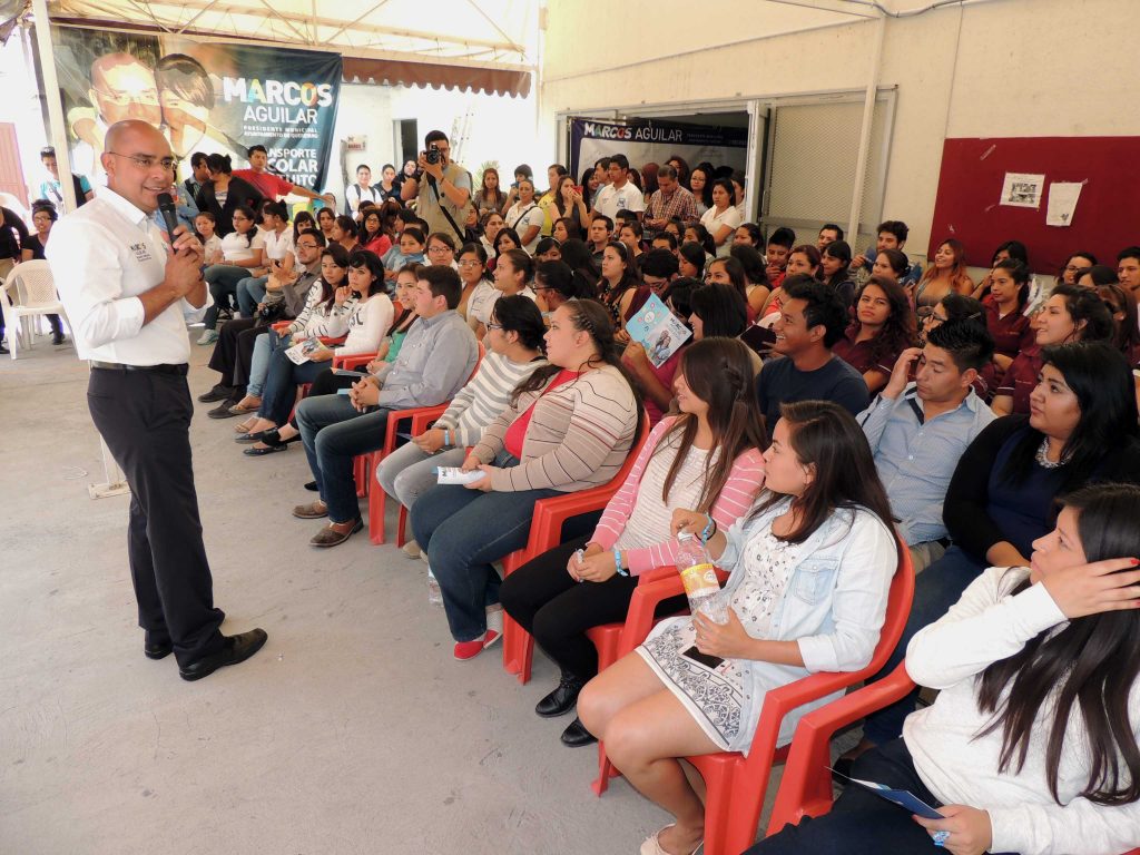 “Lo que pase con Querétaro a partir de hoy, es responsabilidad de todos”, manifestó Marcos Aguilar Vega ante los jóvenes, con quienes intercambió un diálogo al recoger sus propuestas, responder sus preguntas, y explicarles el alcance de las facultades que tiene un gobierno municipal.