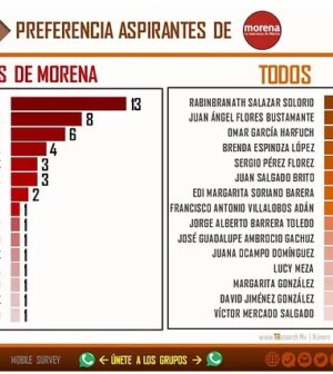 Según la encuestadora nacional TResearch International de Carlos Penna Charolet, a dos años de la elección, Rabinbranath Salazar Solorio se posiciona como el #aspirante favorito de los votantes de #MORENA rumbo a la #gubernatura de #Morelos con una preferencia del 49%. Mientras que Morena tiene una preferencia entre el electorado del 35% contra su más cercano rival que sería Acción Nacional con un 12% de las preferencias. Estos números se han mantenido más o menos estables durante los últimos meses según el reporte mensual de la casa encuestadora.